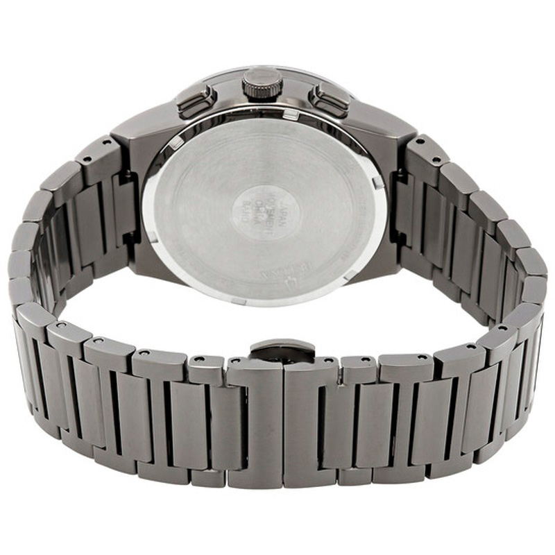 A arquitetura do mecanismo privilegia robustez estrutural e regularidade de marcha. Movimento quartzo, complicações: data, cronógrafo, WR 30 m, pulseira bracelete metálico.