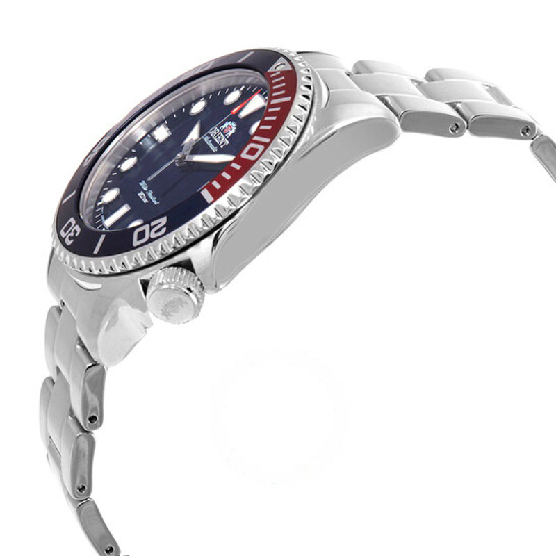 O Orient Triton Automático Mostrador Azul 43 mm Traz uma leitura arquitetônica do tempo com superfícies bem trabalhadas. Caixa em aço inoxidável, Mostrador azul, 43 mm.