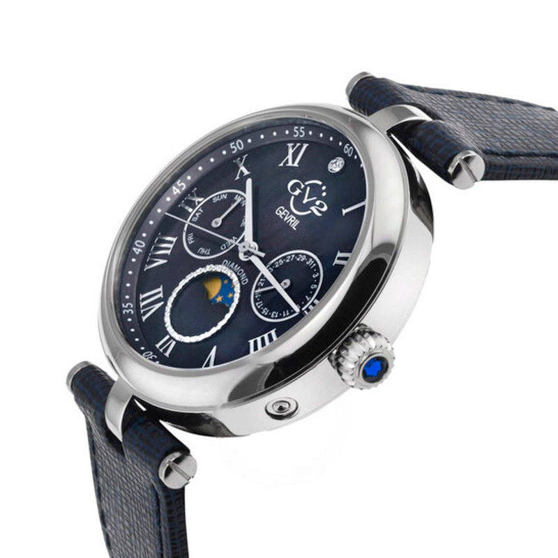 O Gv2 By Gevril Quartzo de Florença 36 mm nasce do rigor de atelier: volume preciso, contornos elegantes. A caixa em aço inoxidável, mostrador azul, 36 mm reforça o caráter escultural.Construído para...