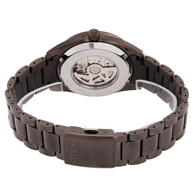 O Citizen Mostrador preto automático 38 mm Traz uma leitura arquitetônica do tempo com superfícies bem trabalhadas. Caixa em aço inoxidável, Mostrador preto, 38 mm.