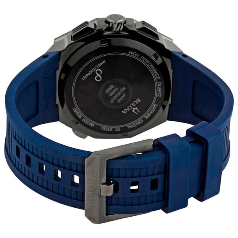 O Bulova Cronógrafo Precisionist Quartzo Mostrador Azul 44 mm Interpreta os códigos da casa com serenidade e atenção à luz. Caixa em aço inoxidável, rosa, Mostrador azul, 44 mm.