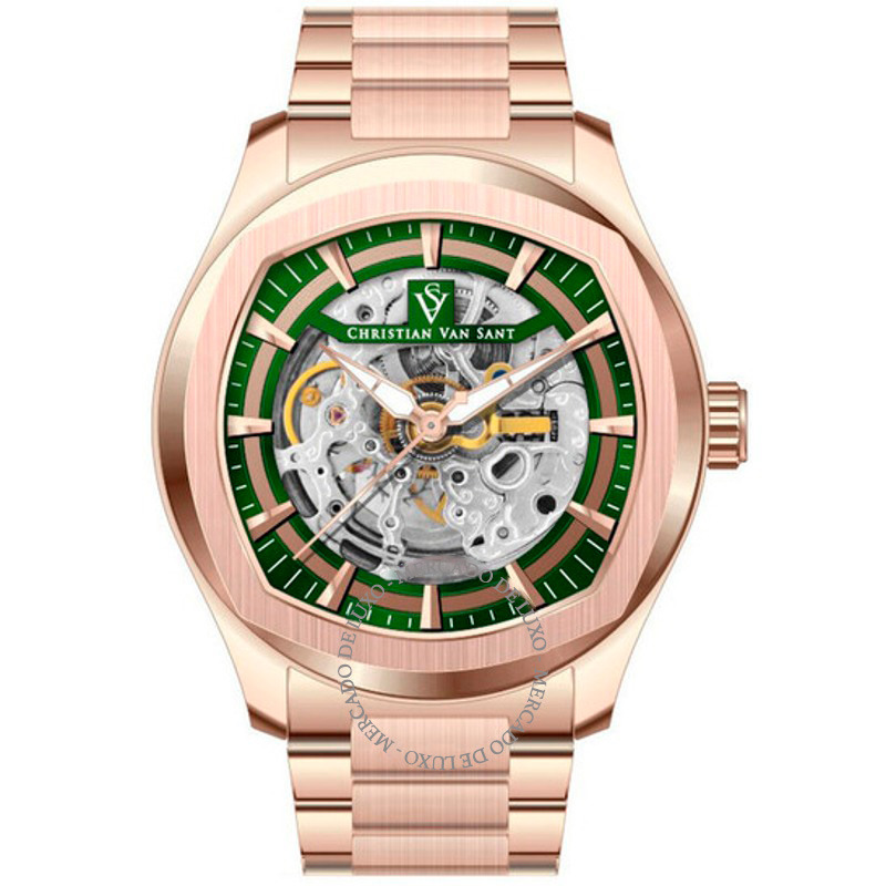O Christian Van Sant Romeo Automático Mostrador Verde 42 mm Traz uma leitura arquitetônica do tempo com superfícies bem trabalhadas. Caixa em aço inoxidável, rosa, Mostrador verde, 42 mm.