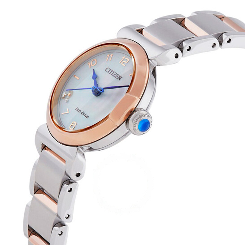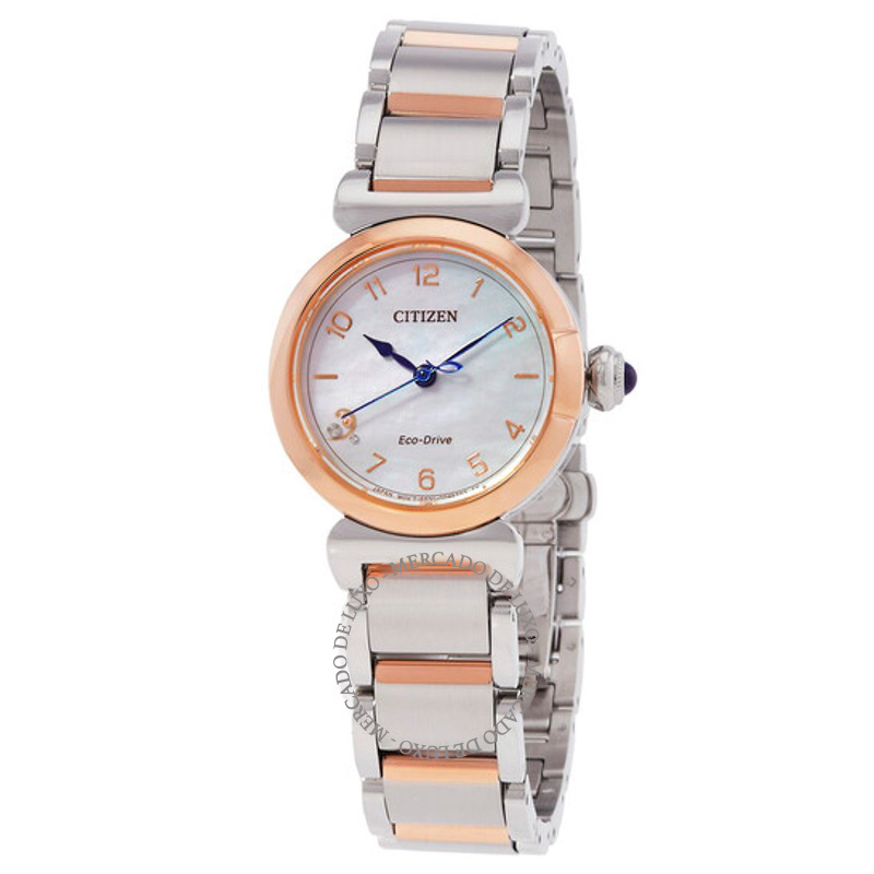 O Citizen L Mae Mostrador em madrepérola branca 26 mm apresenta um estudo de volumes, texturas e reflexos digno de vitrine. caixa em aço inoxidável, rosa, mostrador madrepérola, 26 mm. Resultado...