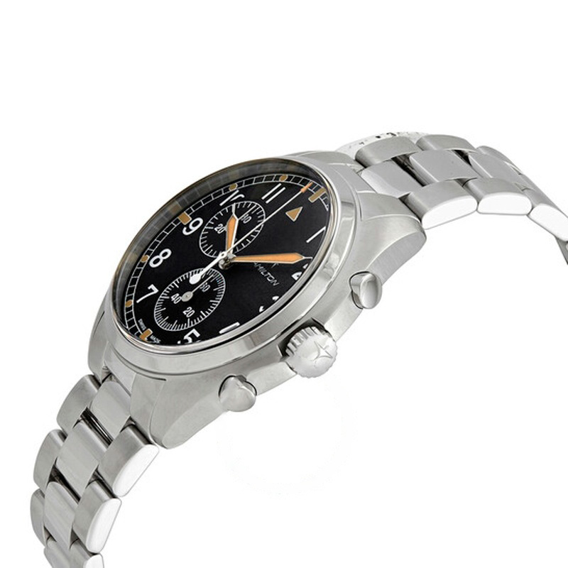O Hamilton Watch Pilot Pioneer Chronograph Quartzo Mostrador Preto 41 mm Equilibra herança e desenho atual em proporções bem resolvidas. Caixa em aço inoxidável, Mostrador preto, 41 mm.