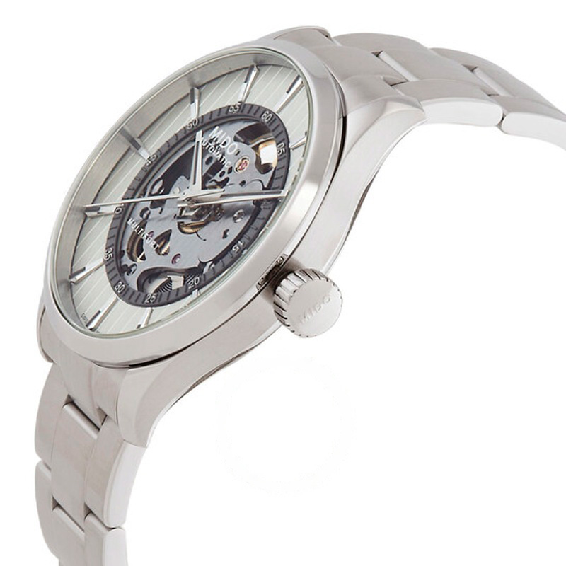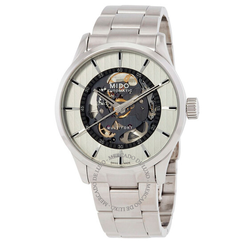 O Mido Multifort Skeleton Vertigo Automático 42 mm Sintetiza elegância, conforto e um toque de vanguarda. Caixa em aço inoxidável, Mostrador prateado, 42 mm.