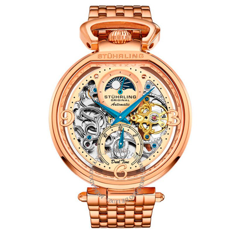 O Stührling Original Legacy Automaticouro Rose Gold Dial 46 mm Um estudo de proporções que privilegia conforto no pulso e presença. Caixa em aço inoxidável, rosa, Mostrador azul, 46 mm.A manufatura...