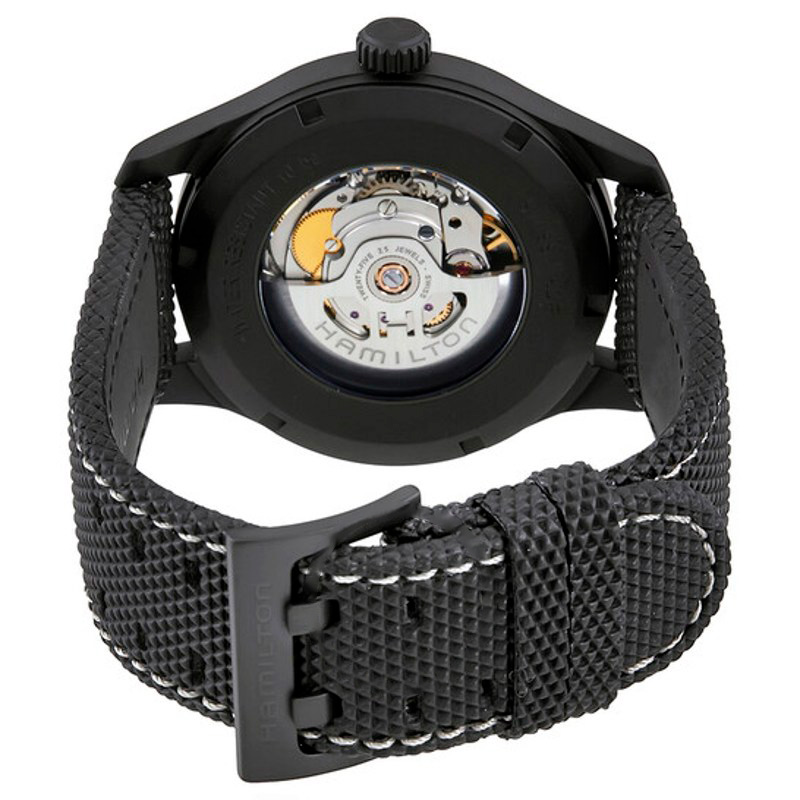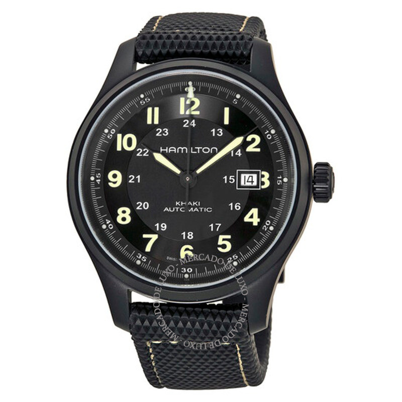 O Hamilton Watch Khaki Field Automático Titânio 42 mm Interpreta os códigos da casa com serenidade e atenção à luz. Caixa em titânio, Mostrador preto, 42 mm.