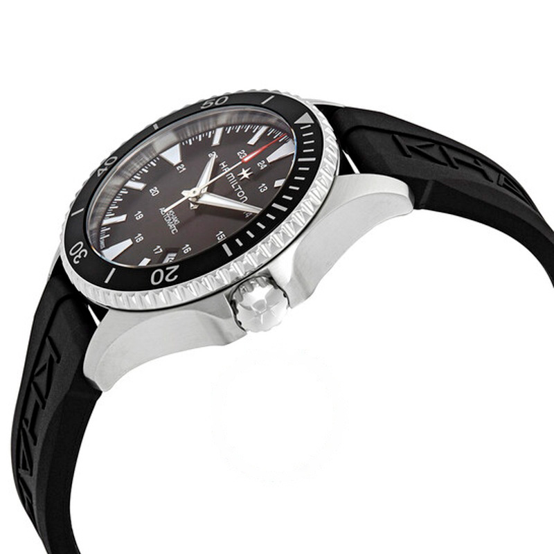 O Hamilton Watch Khaki Navy Automático Mostrador Preto 40 mm Interpreta os códigos da casa com serenidade e atenção à luz. Caixa em aço inoxidável, Mostrador preto, 40 mm.