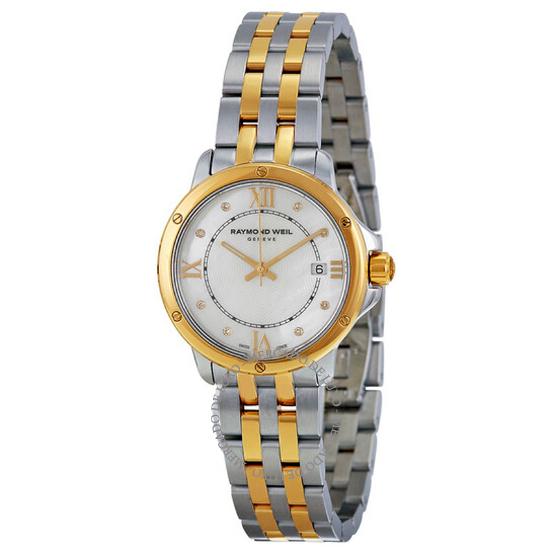 O Raymond Weil Mostrador em madrepérola Tango 28 mm propõe uma leitura contemporânea de elegância, sem exageros. caixa em aço inoxidável, amarelo, luneta cravejada de, mostrador madrepérola com, 28...