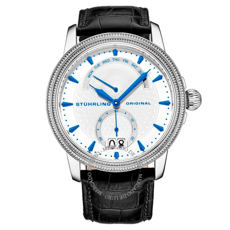 O Stührling Original Mostrador prateado Symphony 45 mm Traz uma leitura arquitetônica do tempo com superfícies bem trabalhadas. Mostrador prateado, 45 mm.