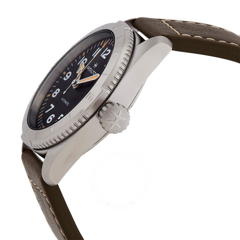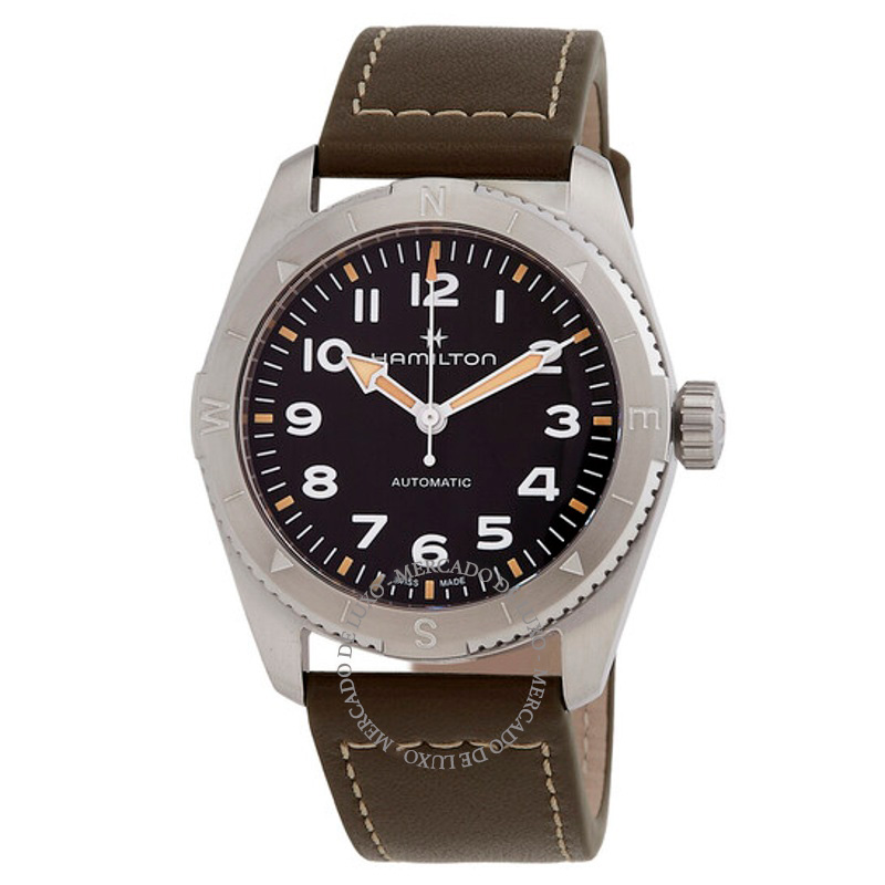 O Hamilton Watch Khaki Field Expedition Automático Mostrador Preto 37 mm Equilibra herança e desenho atual em proporções bem resolvidas. Caixa em aço inoxidável, Mostrador preto, 37 mm.