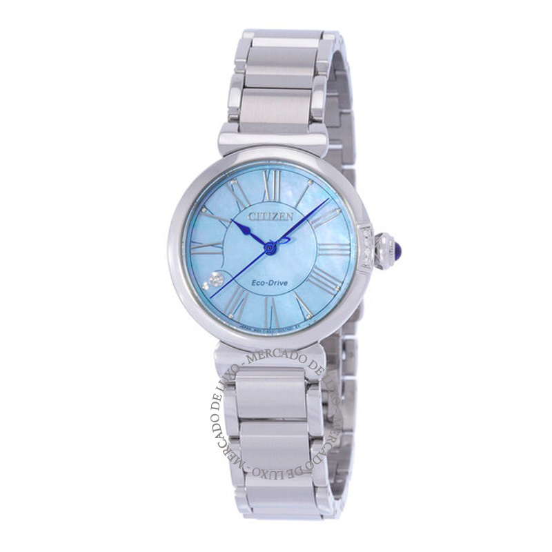 O Citizen Mostrador em madrepérola Eco-Drive da série L 29 mm celebra savoir-faire relojoeiro em um design de leitura imediata. caixa em aço inoxidável, mostrador madrepérola, 29 mm. Resultado visual com superfícies polidas e escovadas em contraste.
