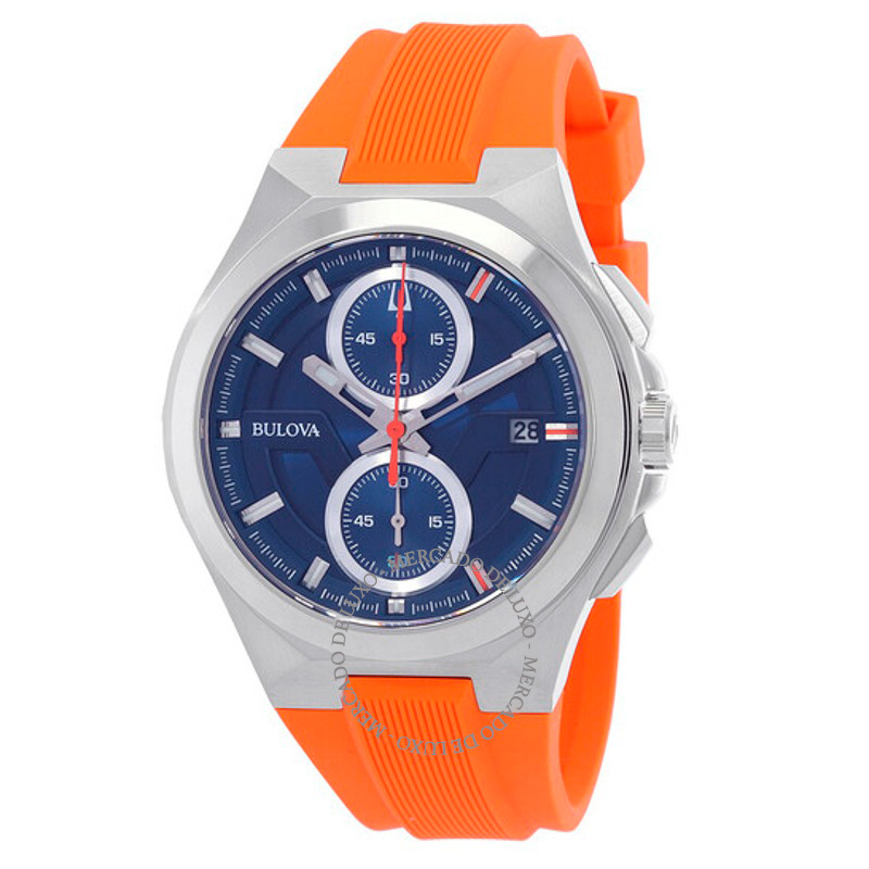 O Bulova Máquina Quartzo Mostrador Azul 46 mm Aposta em linhas limpas e volume preciso — luxo que não grita. Caixa em aço inoxidável, Mostrador azul, 46 mm.