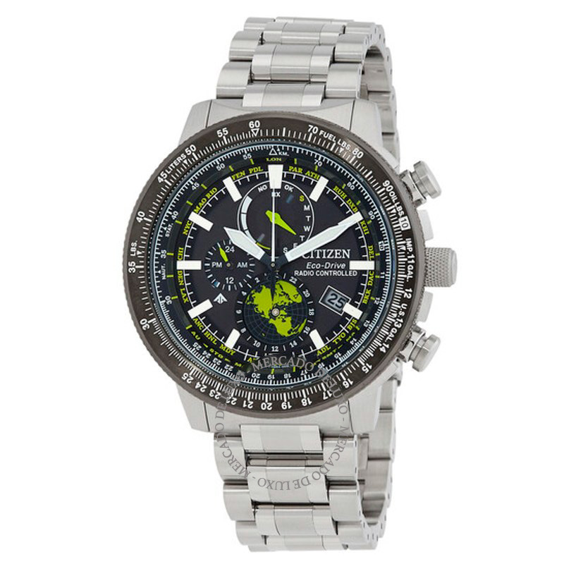 O Citizen Promaster Hora Mundial Mostrador Preto 46 mm Equilibra herança e desenho atual em proporções bem resolvidas. Caixa em aço inoxidável, Mostrador preto, 46 mm.