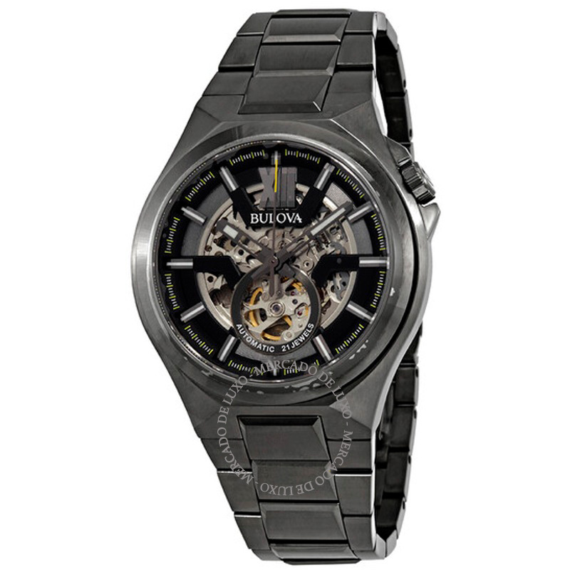 O Bulova Mostrador esqueleto automático clássico em bronze 46 mm Equilibra herança e desenho atual em proporções bem resolvidas. Caixa em aço inoxidável, 46 mm.Tecnologia e artesanato se encontram...