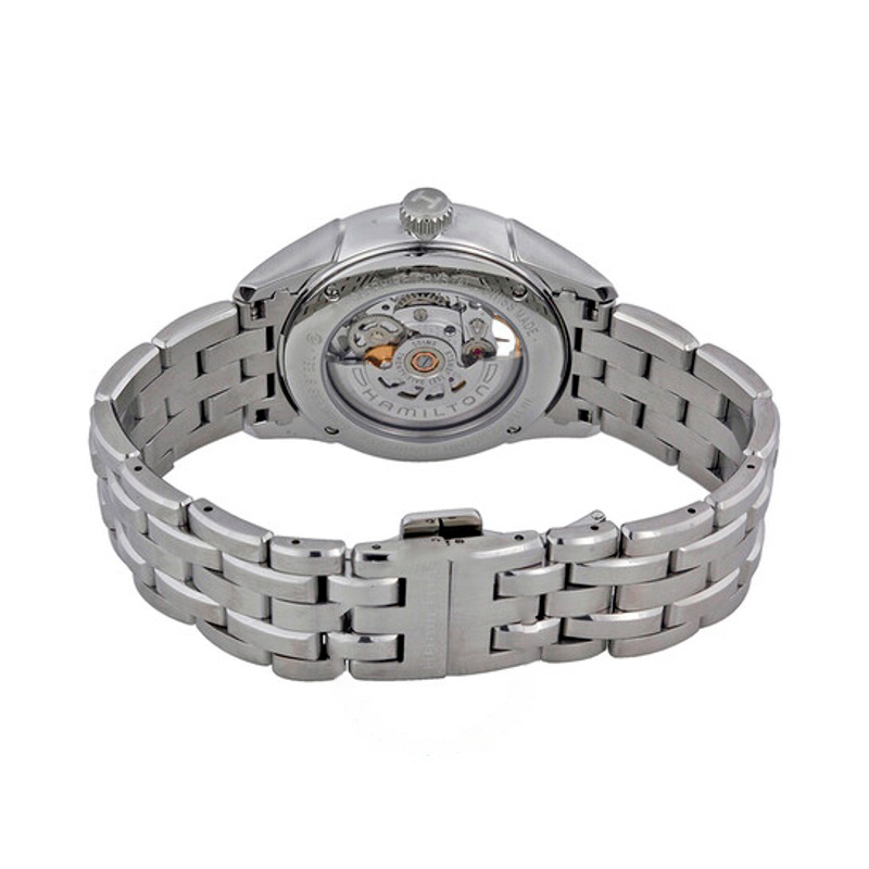 O Hamilton Watch Jazzmaster Viewmaticouro Cinza Mostrador Esqueleto 40 mm Traz uma leitura arquitetônica do tempo com superfícies bem trabalhadas. Caixa em aço inoxidável, Mostrador prateado, 40 mm.