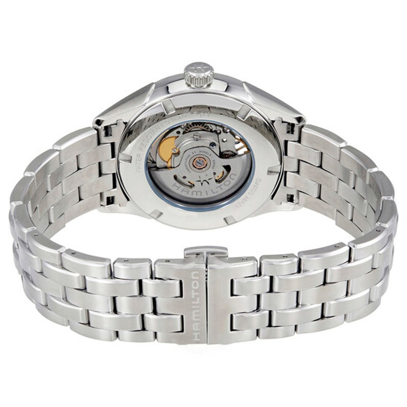 A arquitetura do mecanismo privilegia robustez estrutural e regularidade de marcha. Movimento automático, calibre H-10, frequência 21600 vph, vidro safira, WR 50 m, pulseira bracelete metálico.