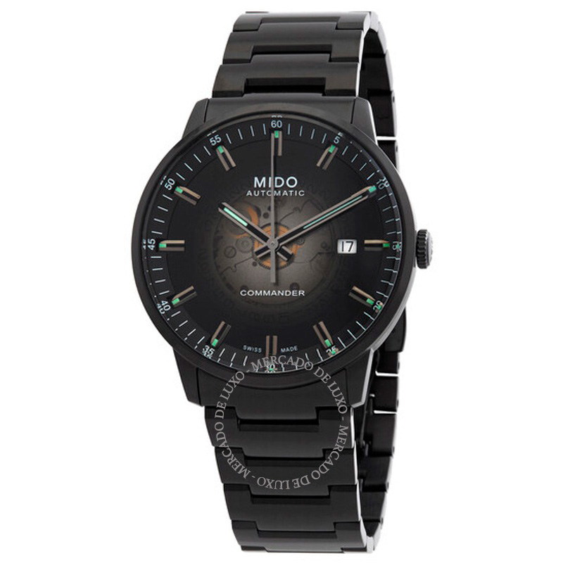 O Mido Comandante Automático Mostrador Preto 40 mm Interpreta os códigos da casa com serenidade e atenção à luz. Caixa em aço inoxidável, Mostrador preto, 40 mm.Tecnologia e artesanato se encontram...