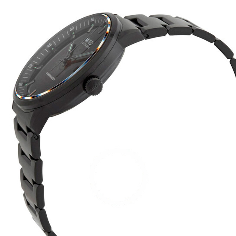 O Mido Comandante Automático Mostrador Preto 40 mm Interpreta os códigos da casa com serenidade e atenção à luz. Caixa em aço inoxidável, Mostrador preto, 40 mm.