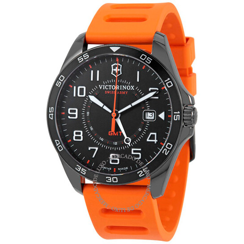 O Victorinox FieldForce Sport GMT Quartzo Mostrador Preto 42 mm Interpreta os códigos da casa com serenidade e atenção à luz. Caixa em aço inoxidável, Mostrador preto, 42 mm.
