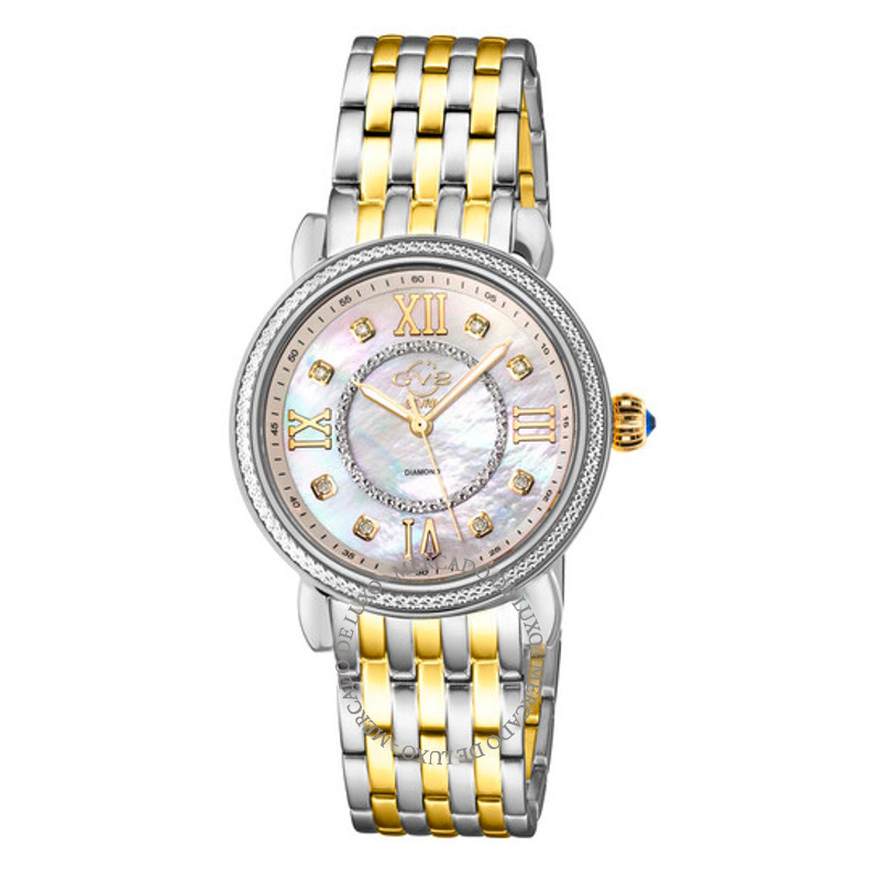 O Gv2 By Gevril Mostrador de madrepérola com Marsala 37 mm traz uma leitura arquitetônica do tempo, com linhas que desenham a luz. A combinação de caixa em aço inoxidável, amarelo, mostrador madrepérola com, 37 mm equilibra sofisticação e praticidade.