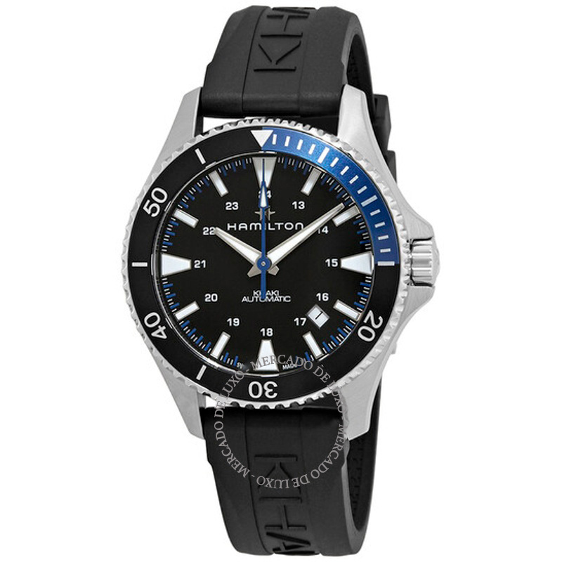 O Hamilton Watch Khaki Navy Scuba Automático Mostrador Preto 40 mm Traz uma leitura arquitetônica do tempo com superfícies bem trabalhadas. Caixa em aço inoxidável, Mostrador azul, 40 mm.Tecnologia e...