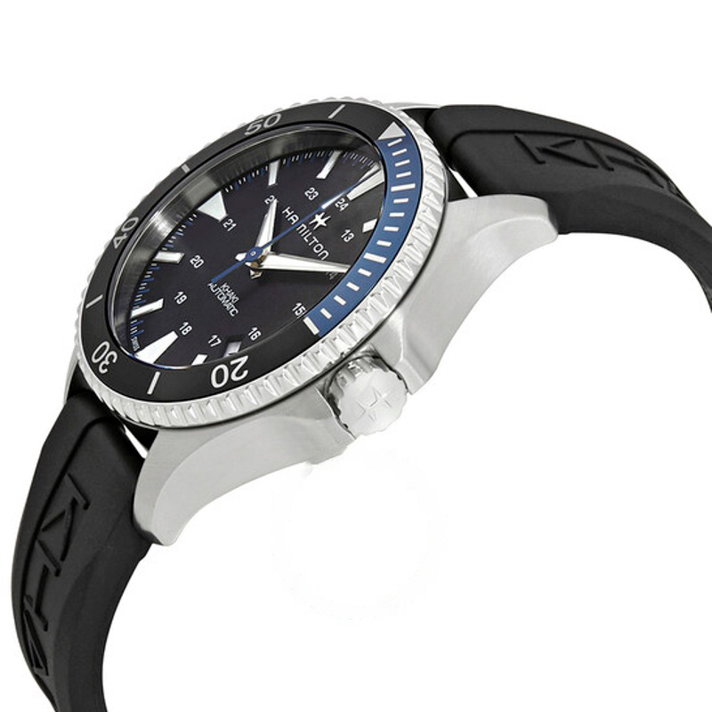 O Hamilton Watch Khaki Navy Scuba Automático Mostrador Preto 40 mm Traz uma leitura arquitetônica do tempo com superfícies bem trabalhadas. Caixa em aço inoxidável, Mostrador azul, 40 mm.