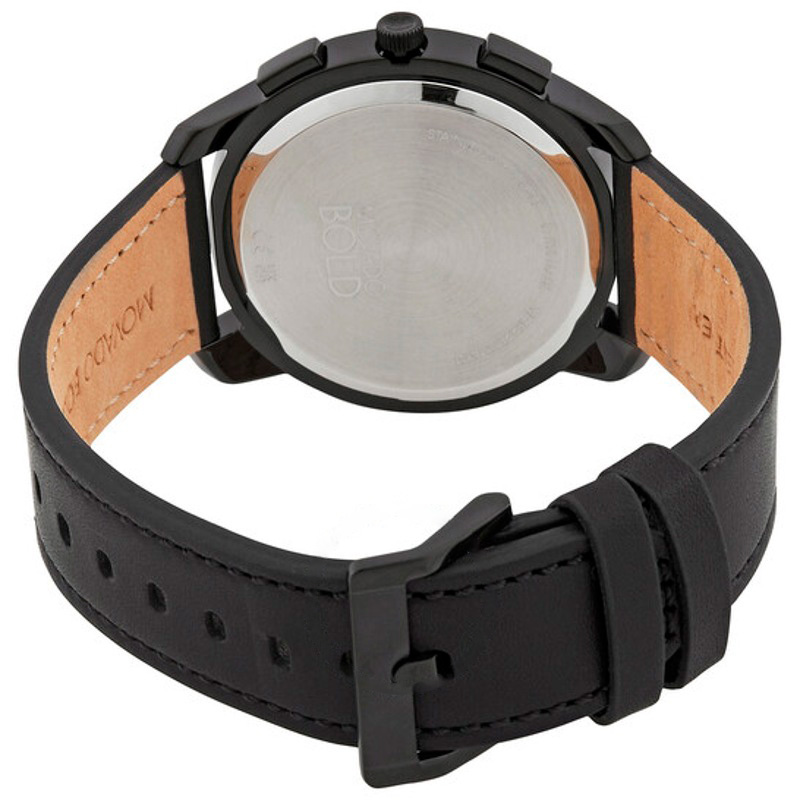 O Movado Cronógrafo fino e ousado mostrador preto de quartzo 42 mm Traz uma leitura arquitetônica do tempo com superfícies bem trabalhadas. Caixa em aço inoxidável, Mostrador preto, 42 mm.