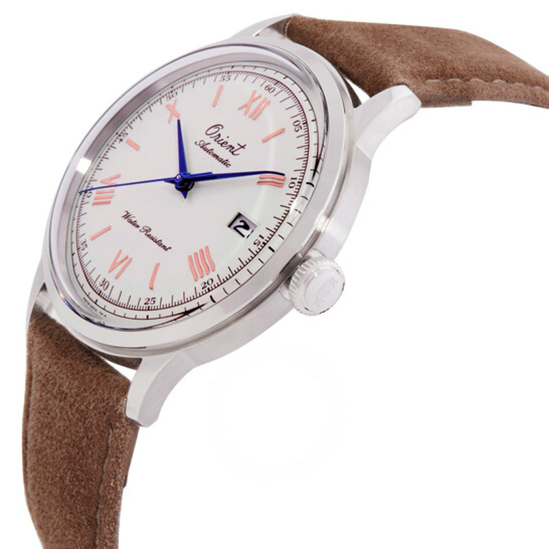O Orient Mostrador branco automático clássico 40 mm Traz uma leitura arquitetônica do tempo com superfícies bem trabalhadas. Caixa em aço inoxidável, Mostrador azul, 40 mm.