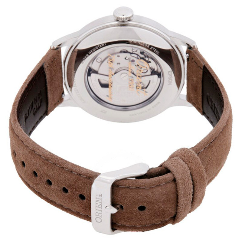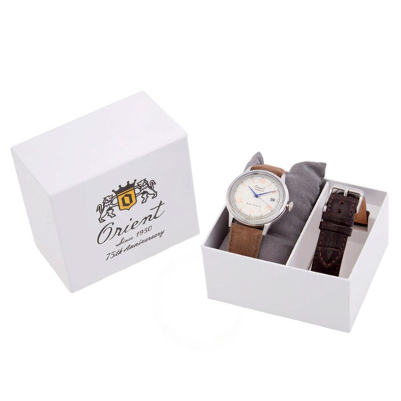 O Orient Mostrador branco automático clássico 40 mm Traz uma leitura arquitetônica do tempo com superfícies bem trabalhadas. Caixa em aço inoxidável, Mostrador azul, 40 mm.No coração, a mecânica...