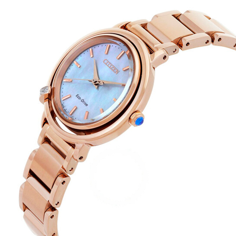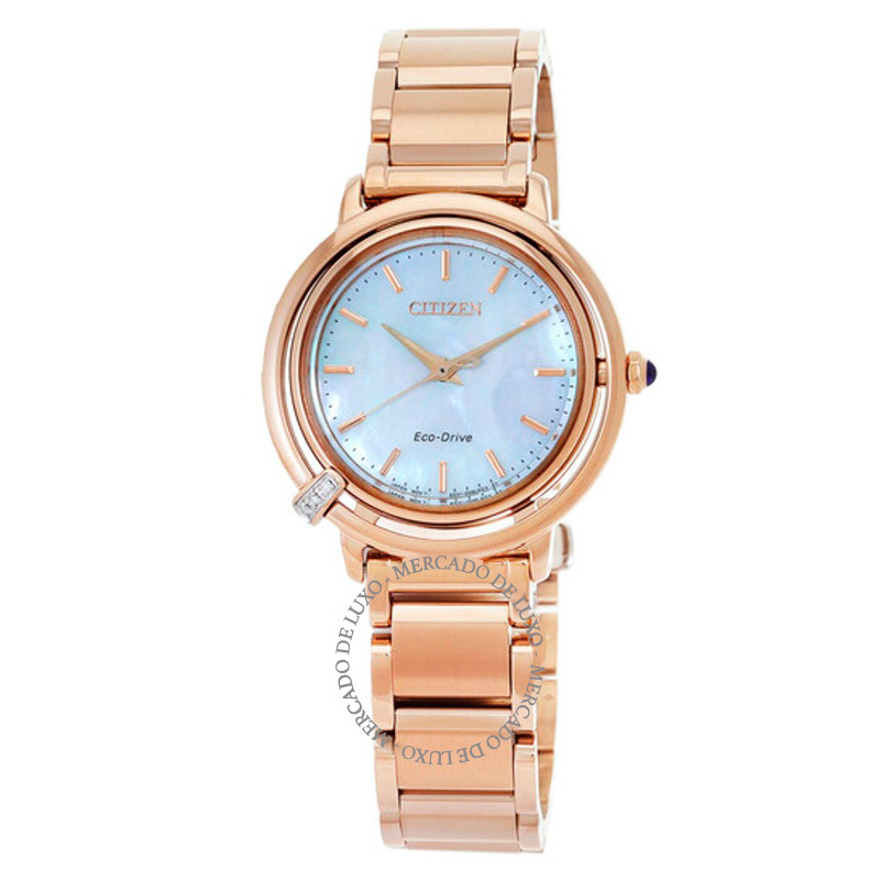 O Citizen Mostrador em madrepérola L Eco-Drive 31 mm celebra savoir-faire relojoeiro em um design de leitura imediata. caixa em aço inoxidável, rosa, mostrador madrepérola, 31 mm. Resultado visual com superfícies polidas e escovadas em contraste.