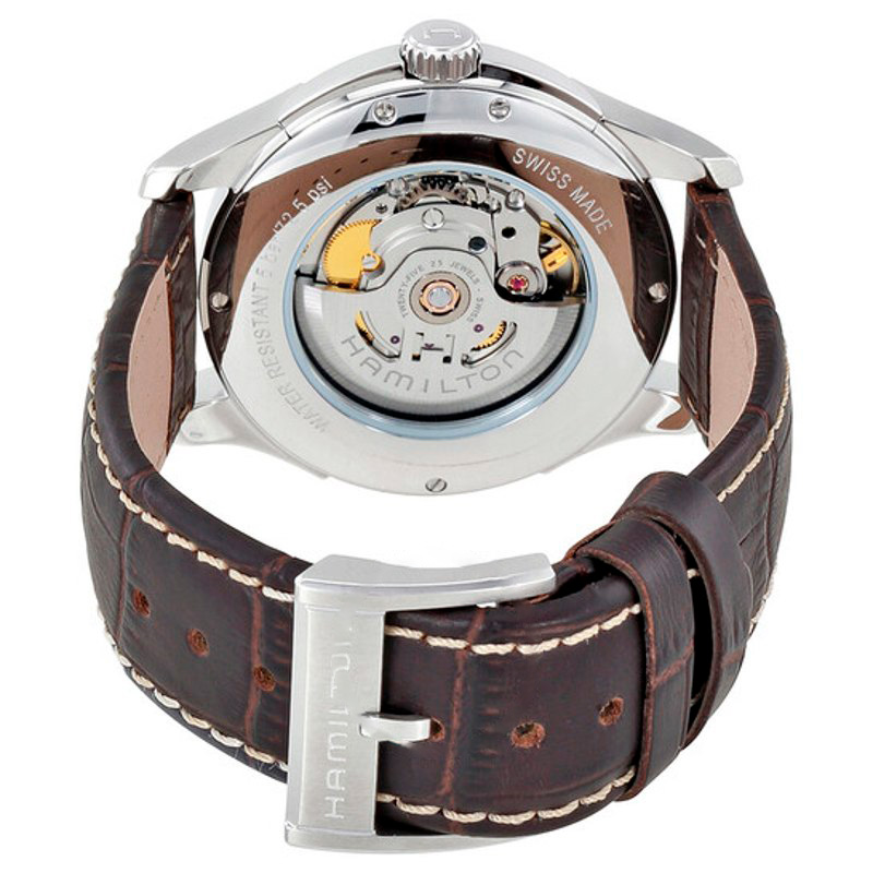 O Hamilton Watch Jazzmaster Automático 40 mm Traz uma leitura arquitetônica do tempo com superfícies bem trabalhadas. Caixa em aço inoxidável, Mostrador preto, 40 mm.A manufatura calibra o movimento...