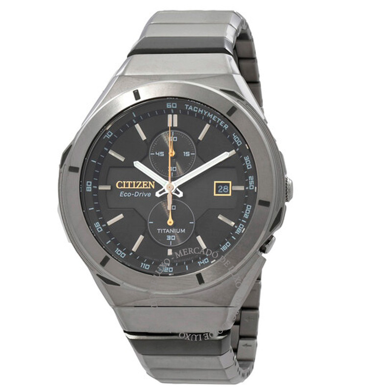 O Citizen Cronógrafo Super Titanium Armor Mostrador Preto 44 mm Equilibra herança e desenho atual em proporções bem resolvidas. Caixa em titânio, Mostrador preto, 44 mm.