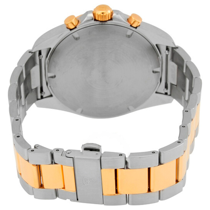 Componentes acabados com rigor elevam precisão, durabilidade e conforto. Movimento quartzo, calibre 5030.D, complicações: data, cronógrafo, vidro safira, WR 100 m, pulseira bracelete metálico.