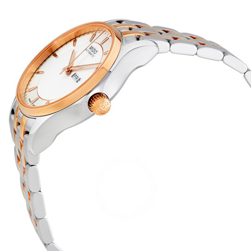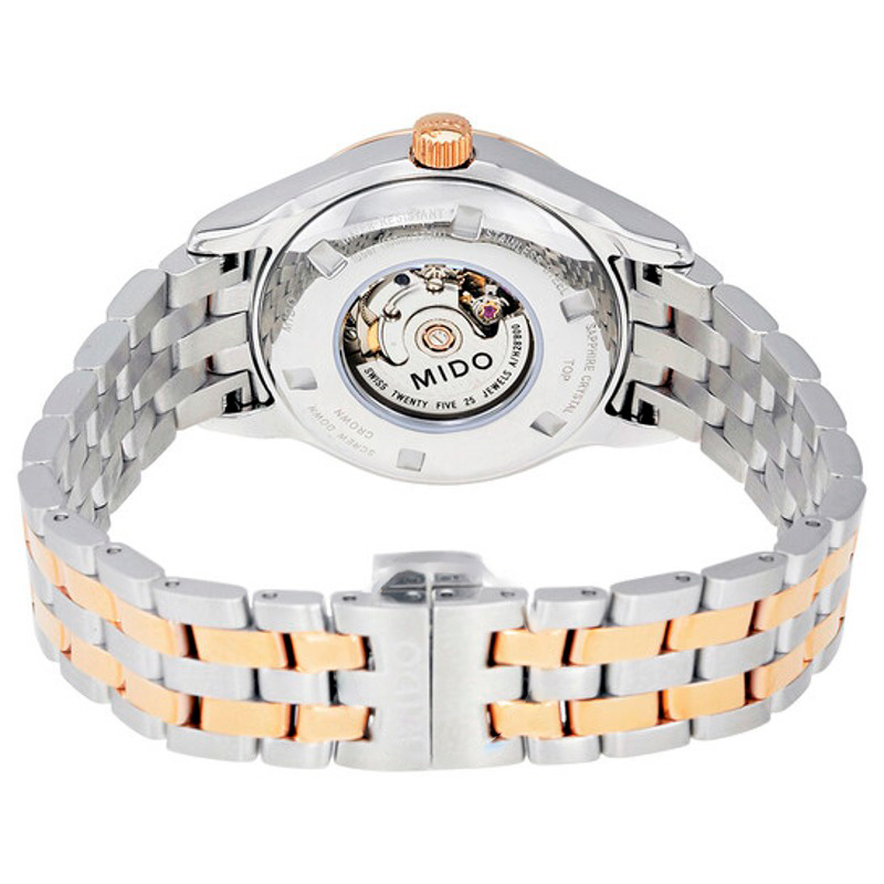O Mido Belluna Automático Mostrador Prateado 33 mm mostra como a precisão também pode ser um gesto de estilo. caixa em aço inoxidável, rosa, mostrador prateado, 33 mm. Texturas bem resolvidas falam de precisão e cuidado à mão.