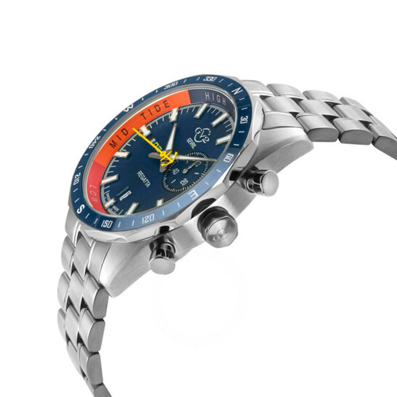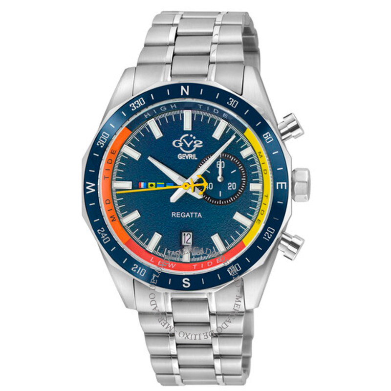 O Gv2 By Gevril Mostrador Azul Regatta 42 mm Aposta em linhas limpas e volume preciso — luxo que não grita. Caixa em aço inoxidável, Mostrador azul, 42 mm.