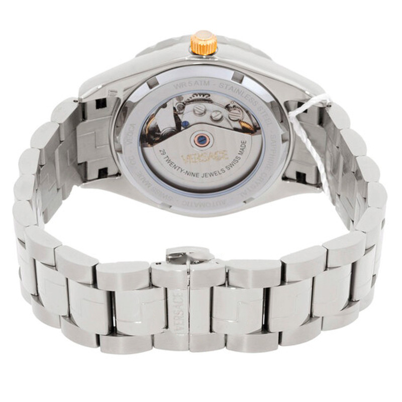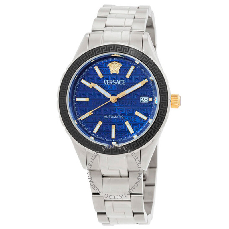 O Versace Hellenyium Automático Mostrador Azul Aposta em linhas limpas e volume preciso — luxo que não grita. Mostrador azul.