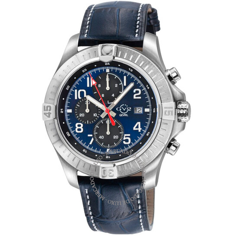 O Gv2 By Gevril Cronógrafo T38 Quartzo Mostrador Azul Equilibra herança e desenho atual em proporções bem resolvidas. Mostrador azul.