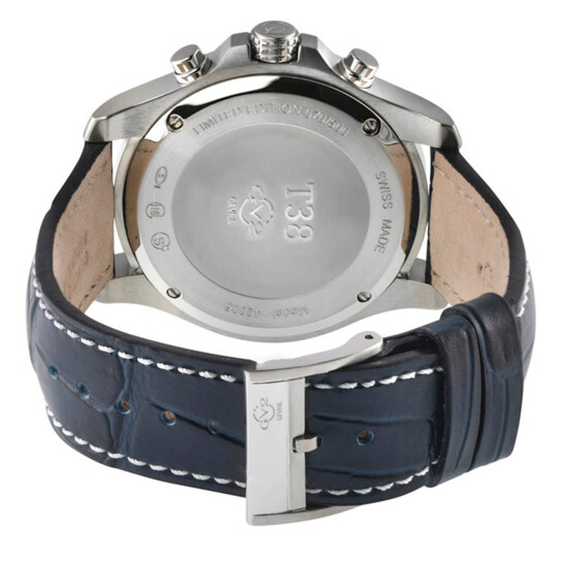 O Gv2 By Gevril Cronógrafo T38 Quartzo Mostrador Azul Equilibra herança e desenho atual em proporções bem resolvidas. Mostrador azul.No coração, a mecânica suíça é regulada para estabilidade...