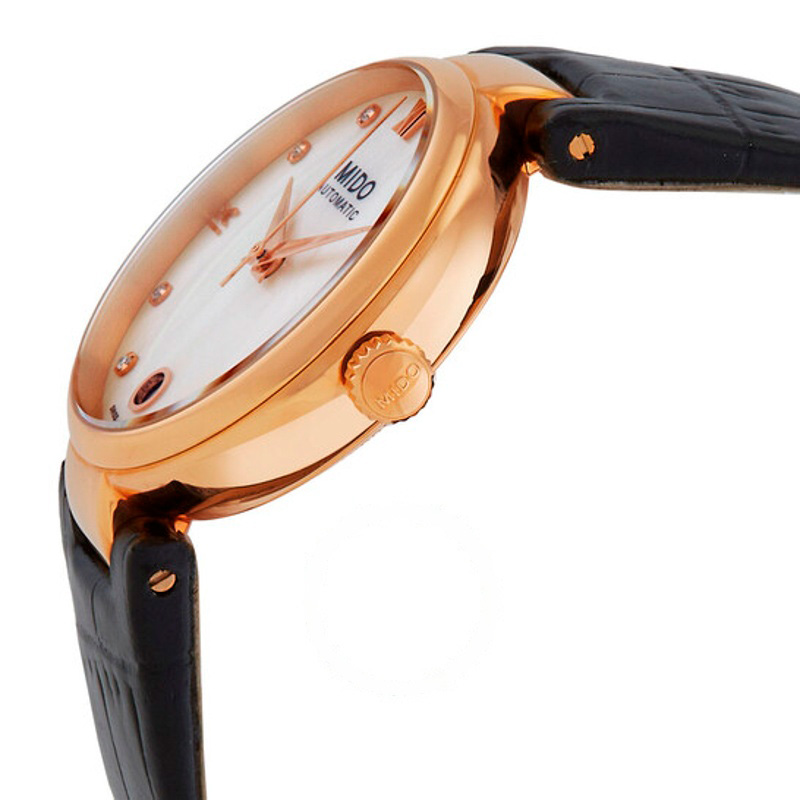 O Mido Baroncelli Automático Diamante Branco Madrepérola Mostrador 33 mm mostra como a precisão também pode ser um gesto de estilo. caixa em aço inoxidável, rosa, luneta cravejada de, mostrador madrepérola com, 33 mm. Texturas bem resolvidas falam de precisão e cuidado à mão.