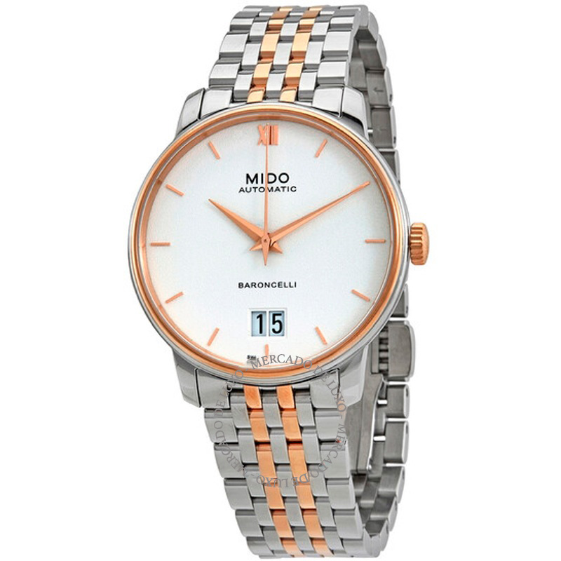 O Mido Baroncelli Automático Mostrador Branco 40 mm Aposta em linhas limpas e volume preciso — luxo que não grita. Caixa em aço inoxidável, rosa, Mostrador prateado, 40 mm.