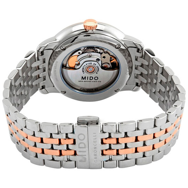 O Mido Baroncelli Automático Mostrador Branco 40 mm Aposta em linhas limpas e volume preciso — luxo que não grita. Caixa em aço inoxidável, rosa, Mostrador prateado, 40 mm.No coração, a mecânica...