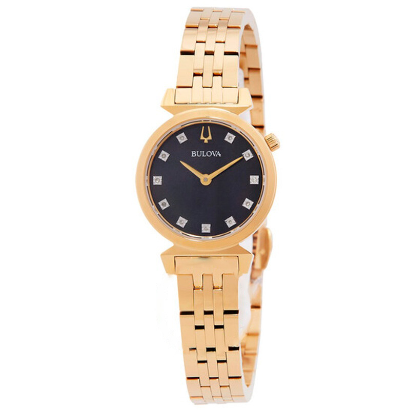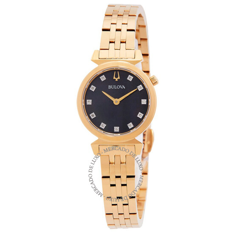 O Bulova Mostrador Regatta Quartz Diamond Black Madrepérola 24 mm combina arquitetura de caixa precisa com detalhes de alta lapidação. mostrador madrepérola com, 24 mm. Resultado visual com luzes e sombras bem distribuídas.