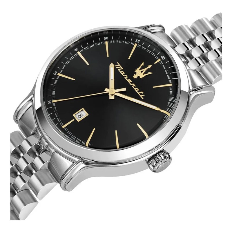 O Maserati Epoca 3H Black Dial Br Ss 42 mm traduz a linguagem da alta relojoaria com proporções impecáveis e acabamento de ateliê. Com caixa em aço inoxidável, mostrador preto, tamanho 42 mm, entrega presença sofisticada e brilho discreto. Uma criação pensada para atravessar tendências com elegância.
