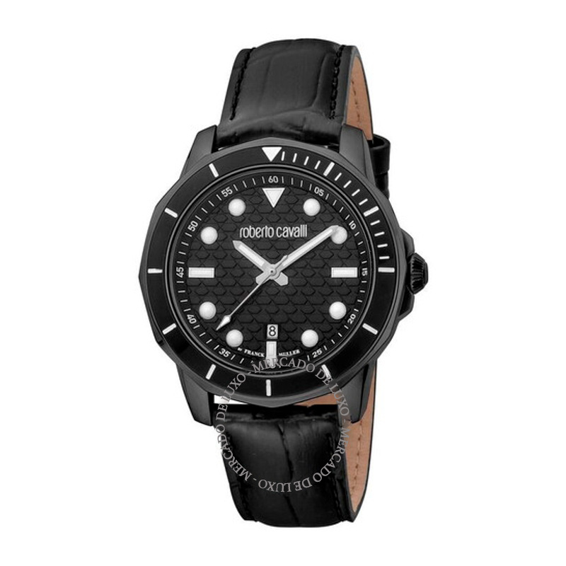 O Roberto Cavalli Mostrador preto de quartzo da moda 42 mm Interpreta os códigos da casa com serenidade e atenção à luz. Mostrador preto, 42 mm.
