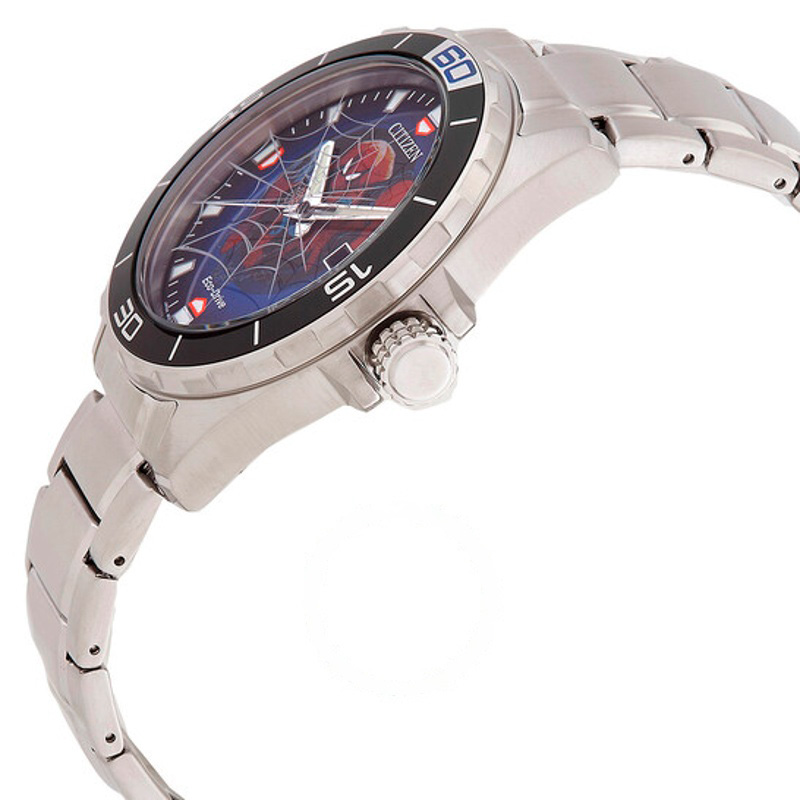 O Citizen Mostrador Azul Eco-Drive do Homem-Aranha 44 mm Aposta em linhas limpas e volume preciso — luxo que não grita. Caixa em aço inoxidável, Mostrador azul, 44 mm.