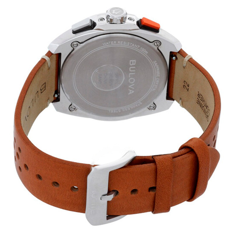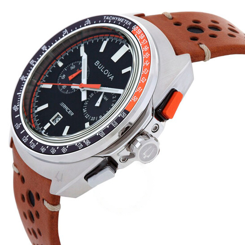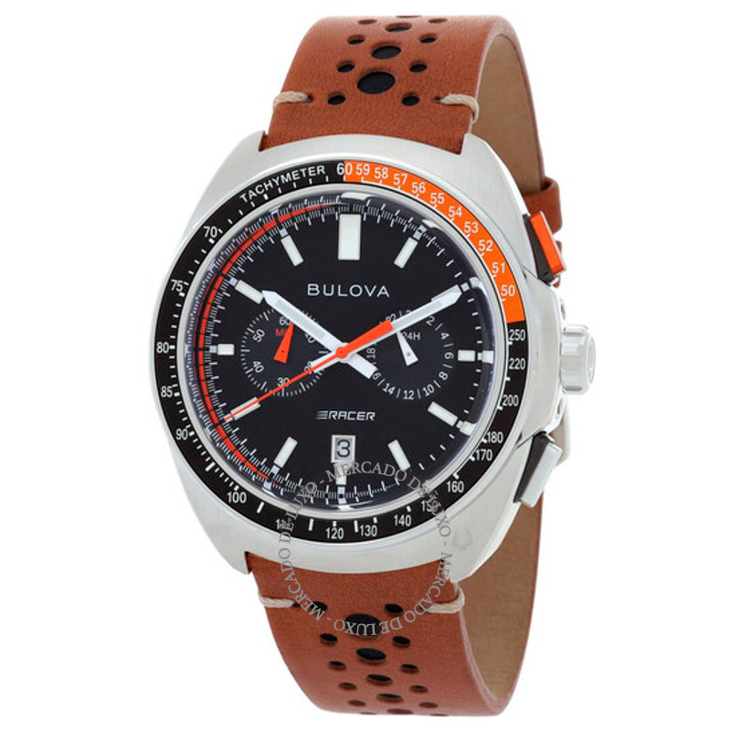 O Bulova Racer Chronograph Quartz Mostrador Preto 42 mm Aposta em linhas limpas e volume preciso — luxo que não grita. Caixa em aço inoxidável, Mostrador preto, 42 mm.