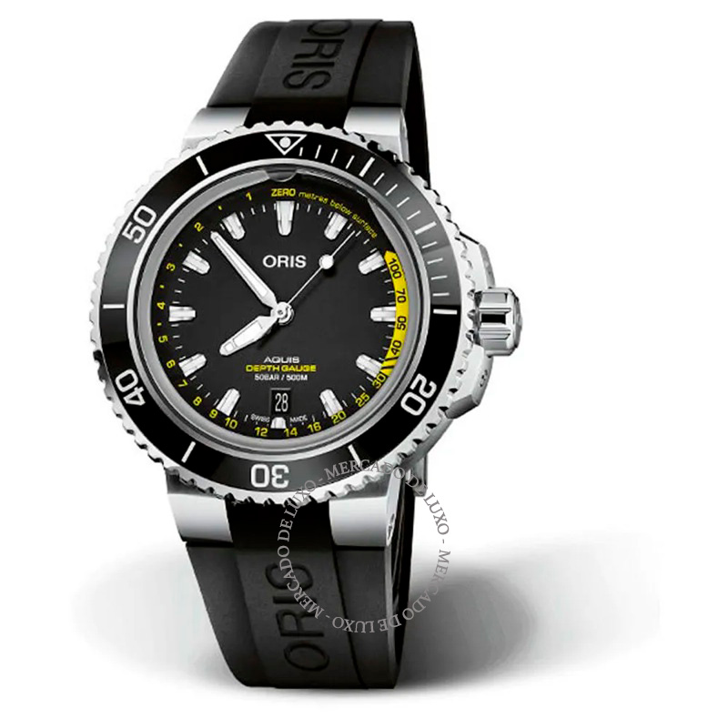 O Oris Aquis Depth Gauger Divers 46 mm traduz a linguagem da alta relojoaria com proporções impecáveis e acabamento de ateliê. Com caixa em aço inoxidável, cerâmica, tamanho 46 mm, entrega presença sofisticada e brilho discreto. Uma criação pensada para atravessar tendências com elegância.