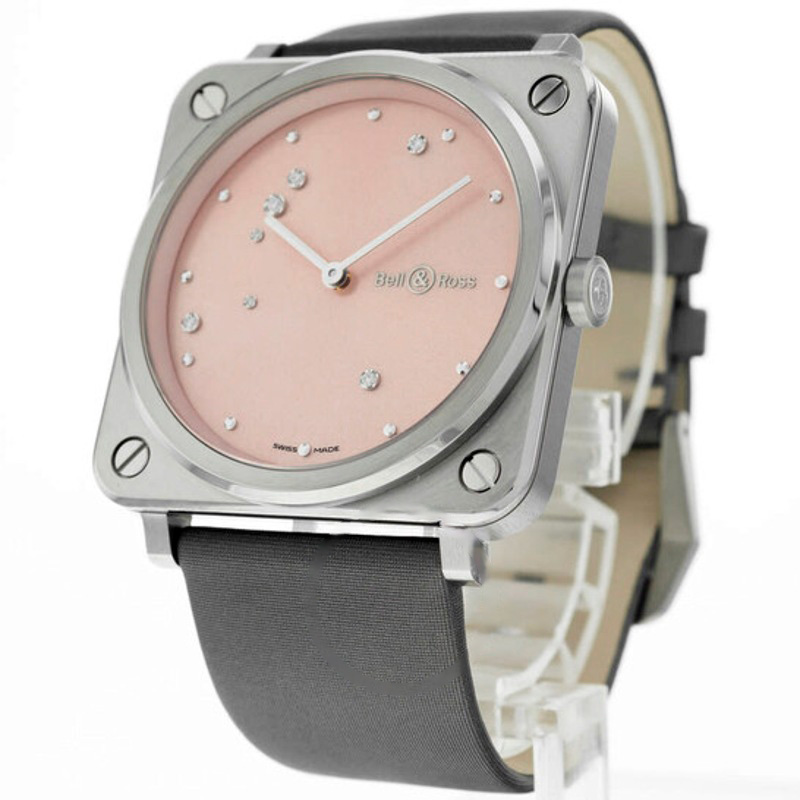O Bell & Ross Quartzo Águia Rosa 39 mm revela sua assinatura estética com linhas nítidas e proporções equilibradas. caixa em aço inoxidável, mostrador preto com, 39 mm. Resultado visual com...