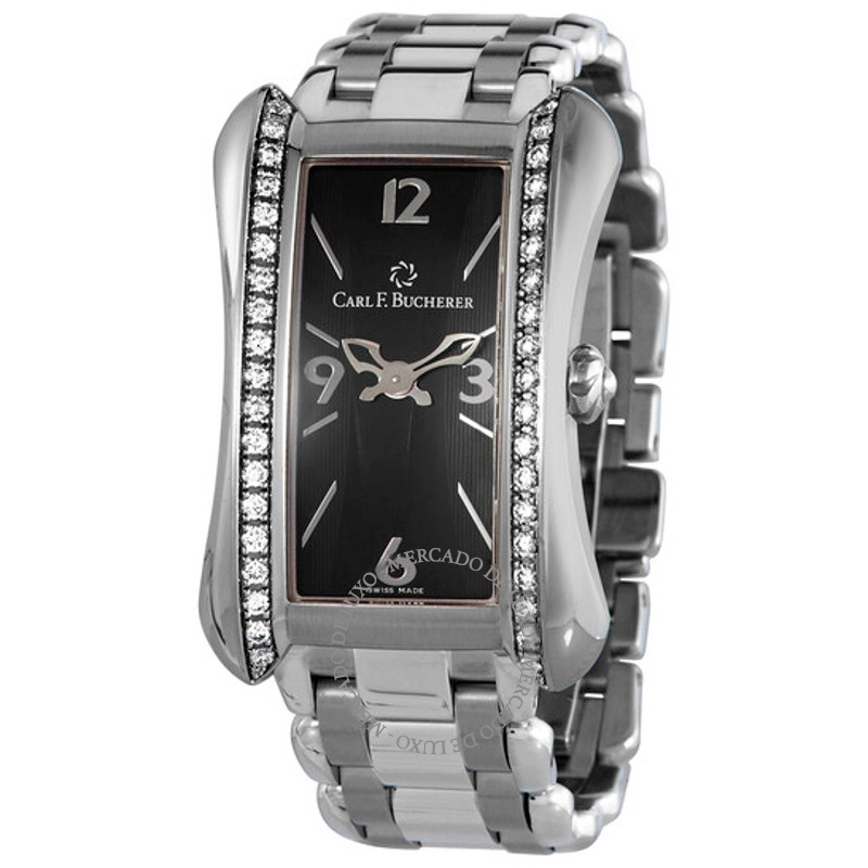 A Carl F. Bucherer apresenta o Alacria Midi, um relógio de 32 mm x 45 mm em aço inoxidável com pulseira de couro preto. Esta peça é uma fusão de luxo retangular, perfeita para a mulher que busca design ousado.